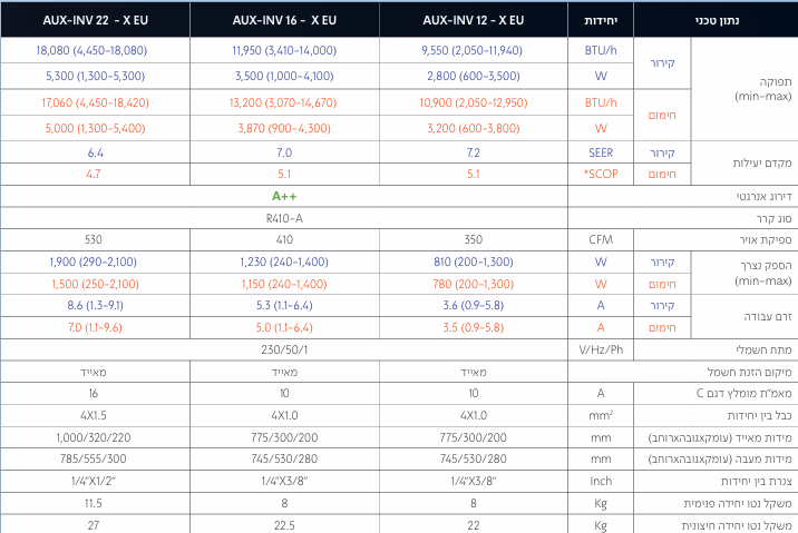 דירוג אנרגטי בקירור A++