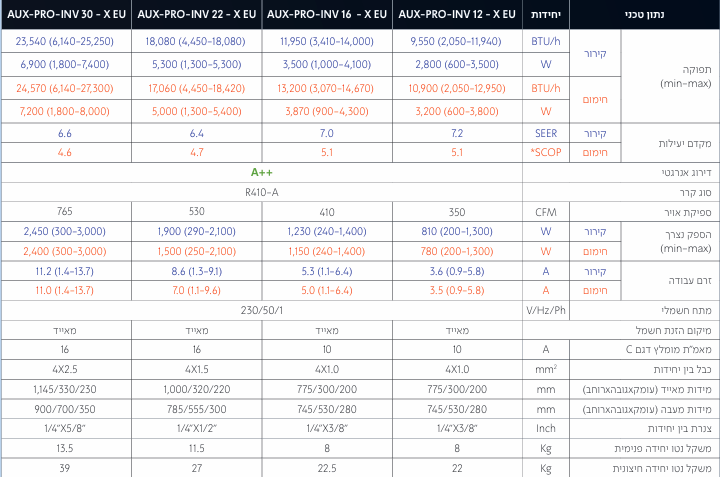 • כל המנועים (מדחס ומאווררים) בטכנולוגיית האינוורטר המתקדמת ביותר.